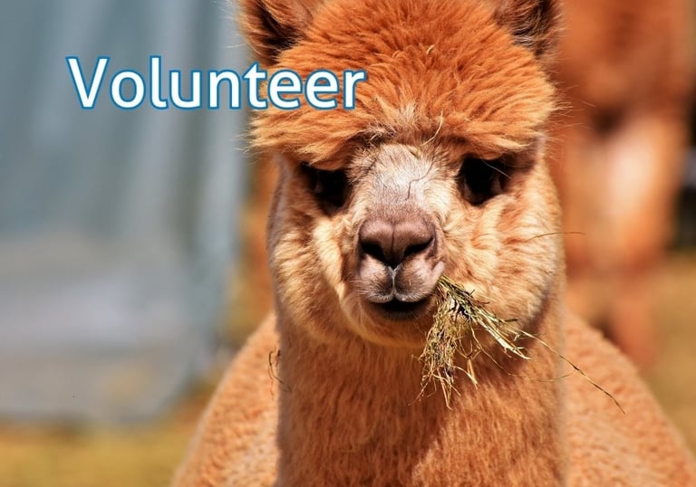 We are a non-profit that relies on a volunteer base. We’re so excited you are interested in learning about camelids, farms and rescues.
